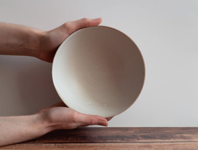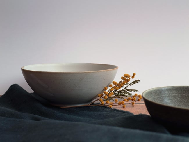 Chaque bol est tourné sur le tour à potier puis émaillé à la main.